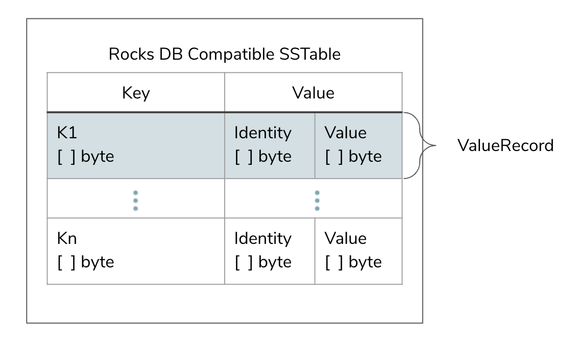 Each Key/Value pair ("ValueRecord") is constructed of a key, identity, and value.